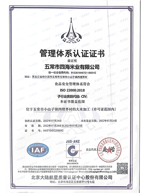 五常市四海米業有限公司坐落于五常市小山子鎮四里界村。地處五常大米核心產區,所生產的“福糧四?!?、“坤小子”、“五隊長”等大米品牌暢銷全國20年,現已發展成為集基地種植、生產加工、倉儲物流、市場營銷于一體的綜合性農業企業。企業注冊資金850萬元,固定資產3000萬元,現有員工50人。是哈爾濱市放心糧油示范加工企業,倉儲水稻能力20000噸,基地建設達到2000畝。四海米業營銷網絡覆蓋全國200余個大中城市,渠道覆蓋現代商超渠道、傳統糧油渠道、餐飲渠道、電商渠道、特通渠道。